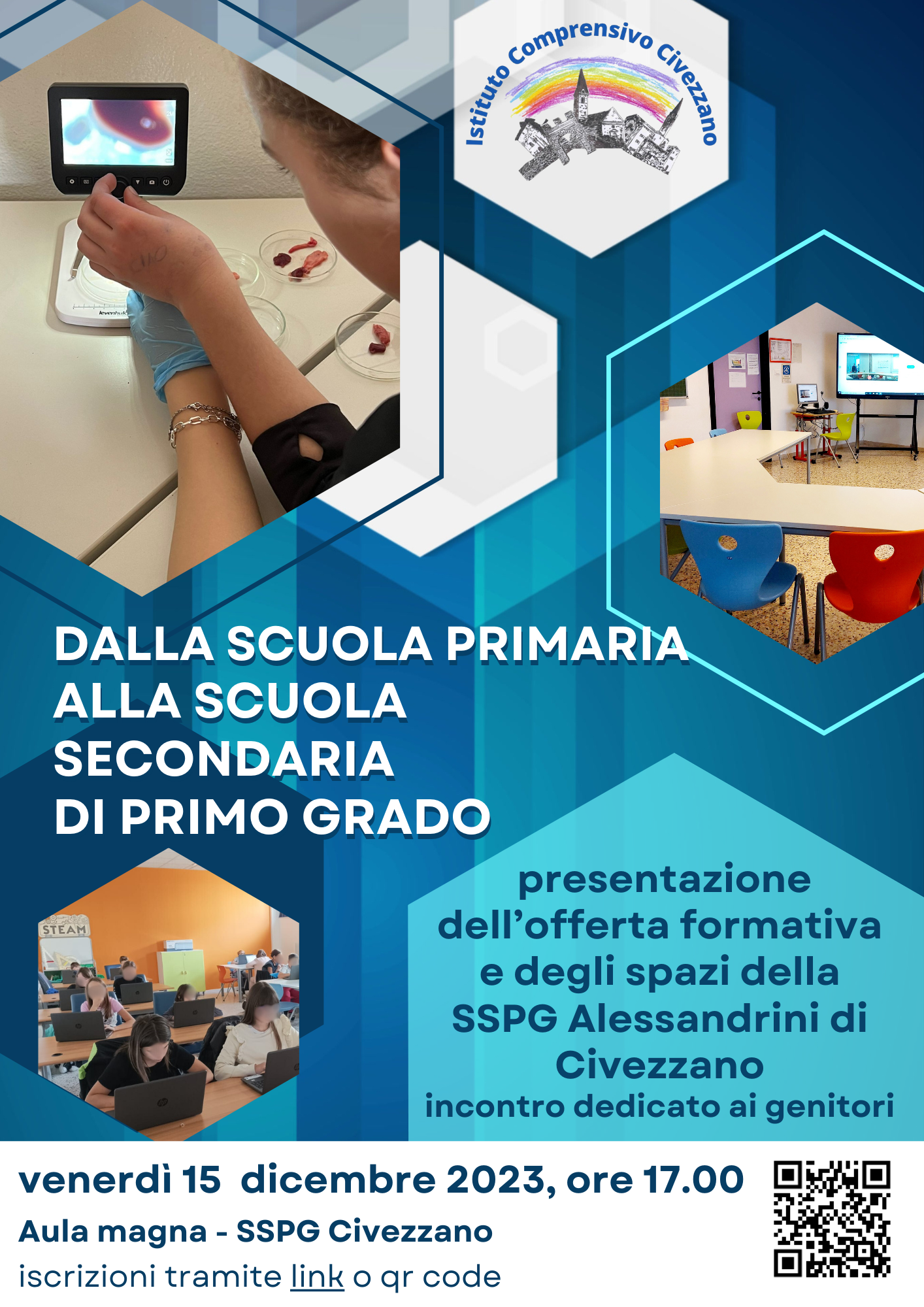 L’incontro di presentazione dell’offerta formativa della Scuola Secondaria di Primo Grado Alessandrini di Civezzano riservato ai genitori degli alunni della classi quinte delle Scuole Primarie di Civezzano, Seregnano e Fornace si terrà venerdì 15 dicembre 2023 alle ore 17.00 presso l’Aula Magna della SSPG di Civezzano.