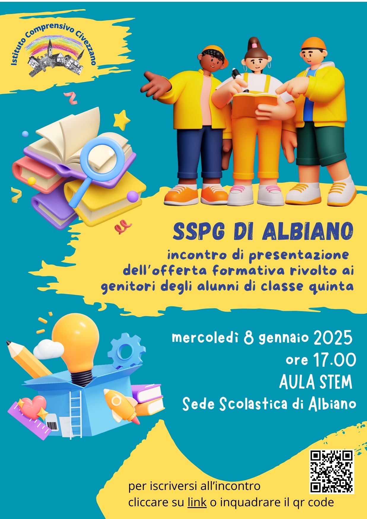 Mercoledì 8 gennaio alle ore 17.00 presso l’Aula STEM della sede scolastica di Albiano si terrà l’incontro di presentazione dell’offerta formativa della SSPG.